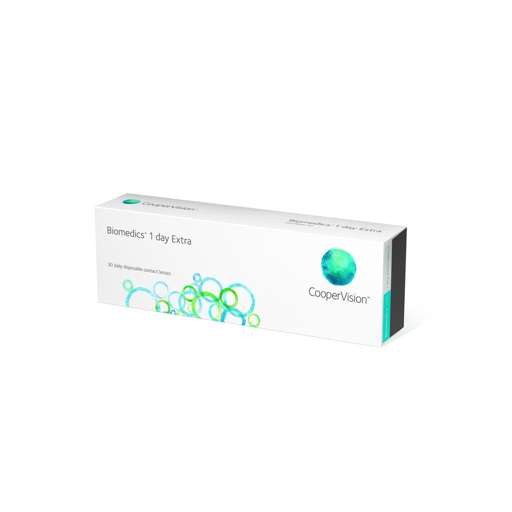 Biomedics 1 Day Extra sú jednodenné kontaktné šošovky navrhnuté pre maximálny pocit prirodzeného celodenného pohodlia pre Vaše oči. Tieto denné kontaktné šošovky sú charakteristické veľmi tenkými okrajmi, vďaka ktorým nedráždia oko a sú veľmi dobre znášané. Biomedics 1 Day Extra sú zafarbené pre ľahšiu manipuláciu. Maximálne prirodzené pohodlie Práve vďaka vysokému komfortu, ktorý pri nosení ponúkajú, sú často vyhľadávané prvonositeľmi alebo nositeľmi napr. mesačných kontaktných šošoviek, ktorí sa už nechcú obmedzovať starostlivosťou o kontaktné šošovky a chcú využiť najpohodlnejší a najzdravší spôsob nosenia kontaktných šošoviek.