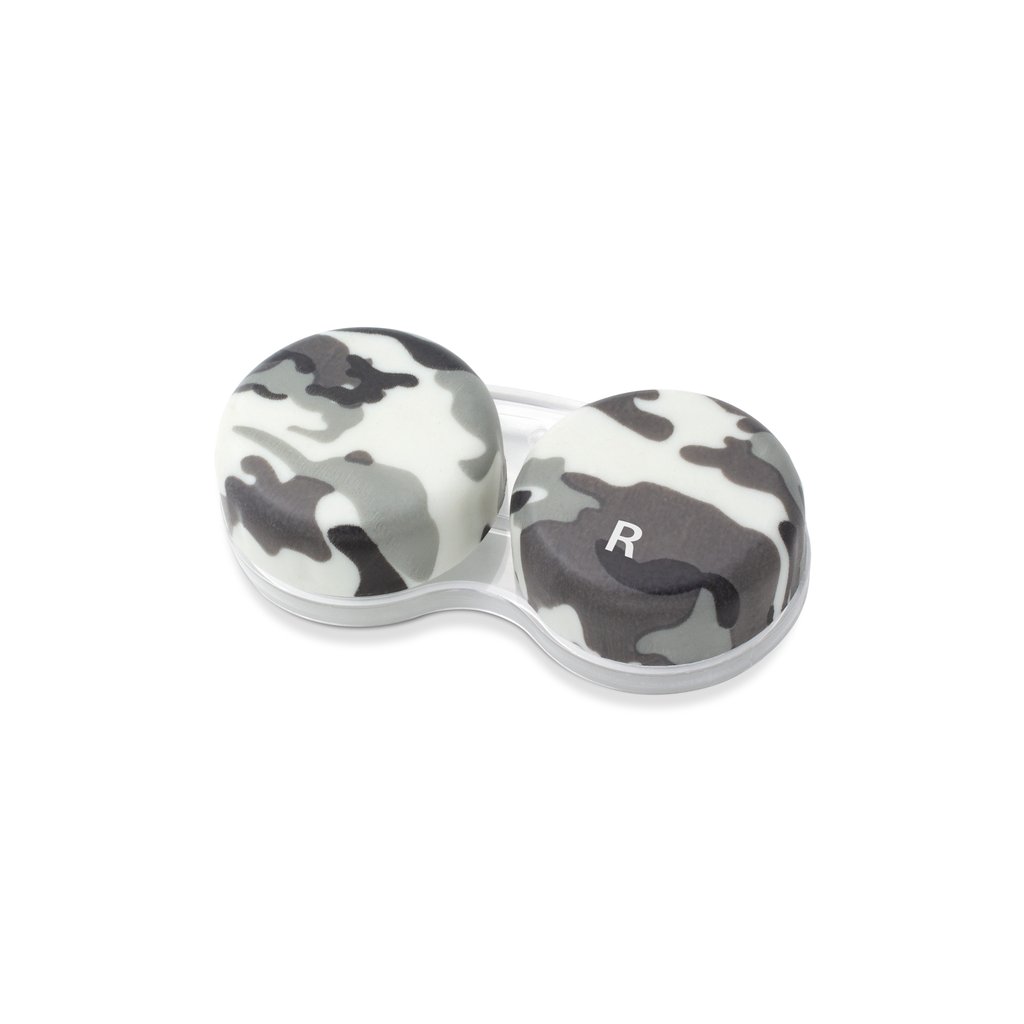 Klasické puzdro na kontaktné šošovky s armádnym motívom - skrutkovacie s rozlíšením pravej a ľavej strany.